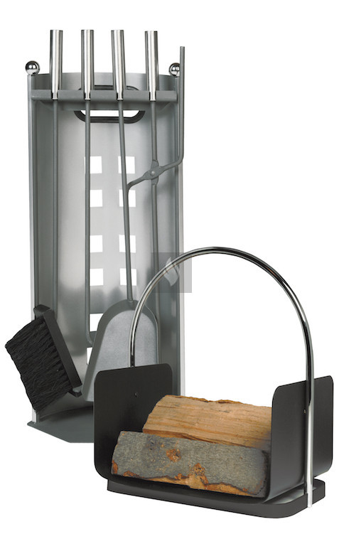 2 részes szett: Kandallótisztító, ezüst-antracit, és fatároló