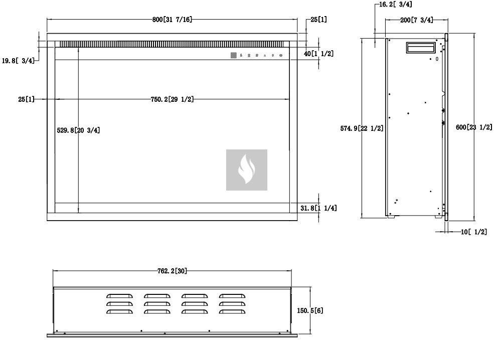 Afena 3D 80x60 Fekete Beépíthető elektromos kandalló