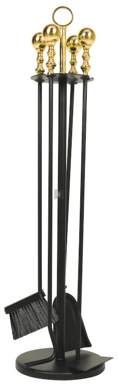 Fekete színű cserépkályha tisztító, sárgaréz nyéllel.