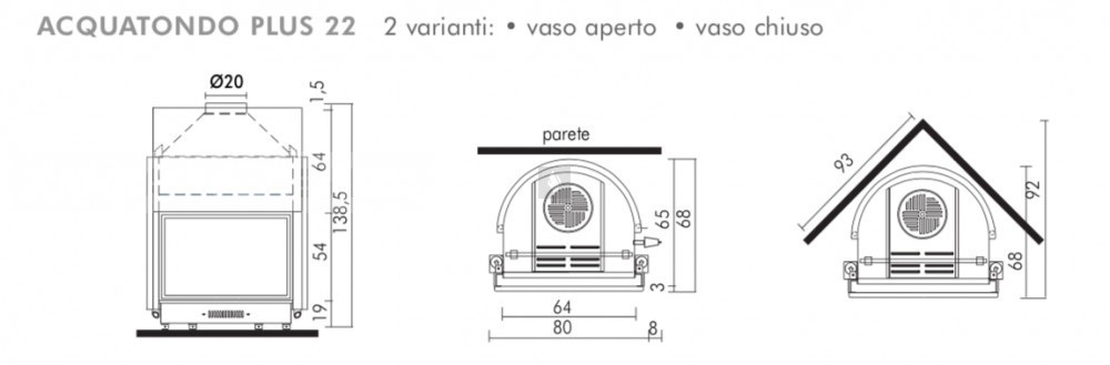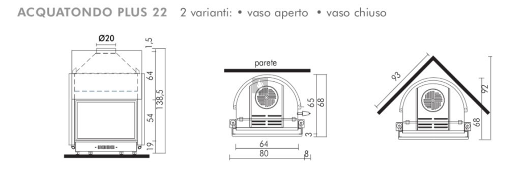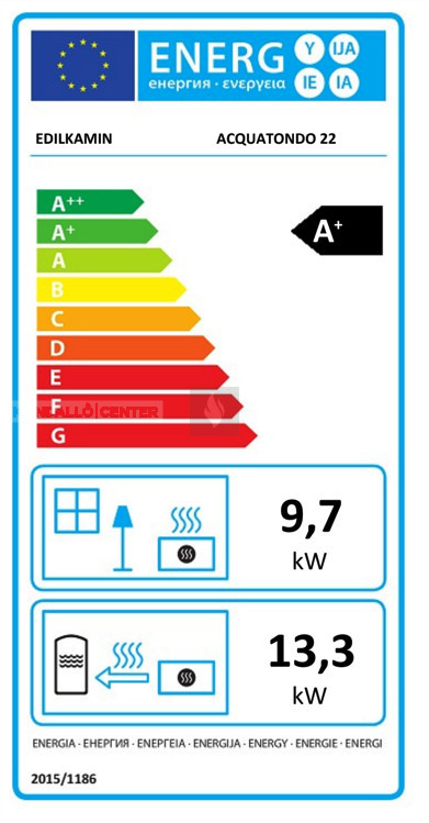 Nagy falvastagságú acéllemezből készült vízteres tűztérbetét. Az Edilkamin fatüzelésű, központi fűtésre köthető, vízteres kandallói - teljesítményük függvényében - képesek az épület fűtési és használati melegvíz rendszerét ellátni. A síküveges tolóajtóval felszerelt, gravírozott, teljes, nagy panorámás üvegfelületű Acquatondo Plus 22 bármilyen stílusú kandallóburkolatba kiválóan adaptálható, legyen szó síkfali vagy sarokbeépítésről. Opcionálisan lehetőséget kínál zárt fűtési rendszerbe történő bekötésre beépített csőkígyóval (hűtőkörrel) és termikus biztonsági elfolyószeleppel ellátott változat esetén.