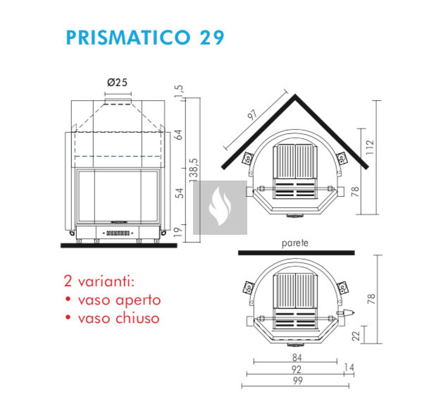 Nagy falvastagságú acéllemezből készült vízteres tűztérbetét. Az Edilkamin fatüzelésű, központi fűtésre köthető, vízteres kandallói - teljesítményük függvényében - képesek az épület fűtési és használati melegvíz rendszerét ellátni. Az elől és az egyik oldalon üvegezett tolóajtóval felszerelt Acquatondo 29 bármilyen stílusú kandallóburkolatba kiválóan adaptálható, legyen szó síkfali vagy sarokbeépítésről.