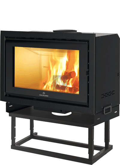 Állítható magasságú tartószerkezettel felszerel kandalló, acél szerkezetű Ecokeram égéstérrel, panorámaüveggel, jobbra vagy balra nyíló ajtóval.