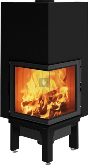 Fatüzelésű sarokkandalló tűztér samott belsővel, amely csodálatos tűzpanorámát nyújt.