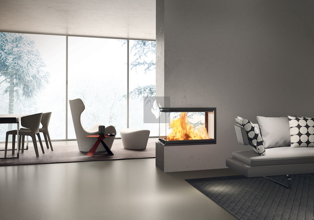 A tűztérbetét meghatározó jellemzője a kivételesen nagyméretű kétoldalas üvegajtó, melynek köszönhetően a tűz látványát mindkét irányból maximálisan élvezhetjük.