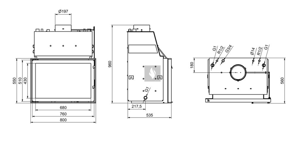 Lehetőség van szükség esetén a tűztér bélelésére, mely csökkenti a pára, illetve kátrány kicsapódást, valamint növeli a tűztér élettartamát. Vízköpenyes, vízteres kandallóbetét nyílt, vagy zárt fűtési rendszerhez. További opciók: külsőlevegő csatlakozás.
