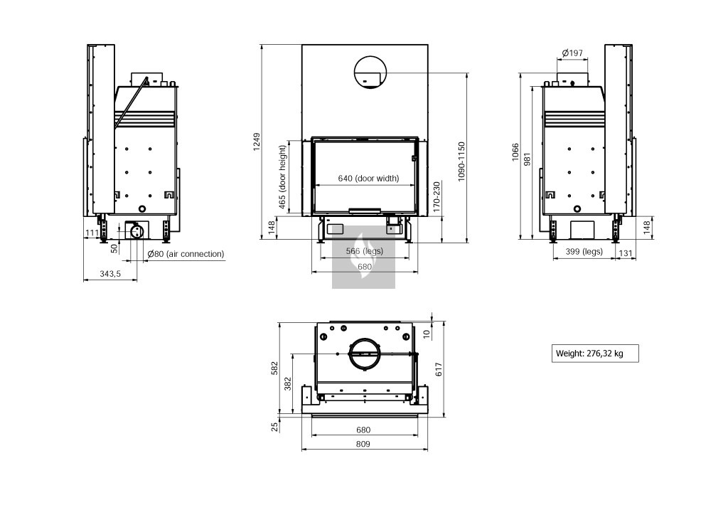 Firetechnic PanAqua 80 EVO LD Vízteres kandallóbetét, Liftes (feltolható ajtó)val. Üvegezés típusa: Síküveges. 20,0 kW névleges teljesítménnyel.