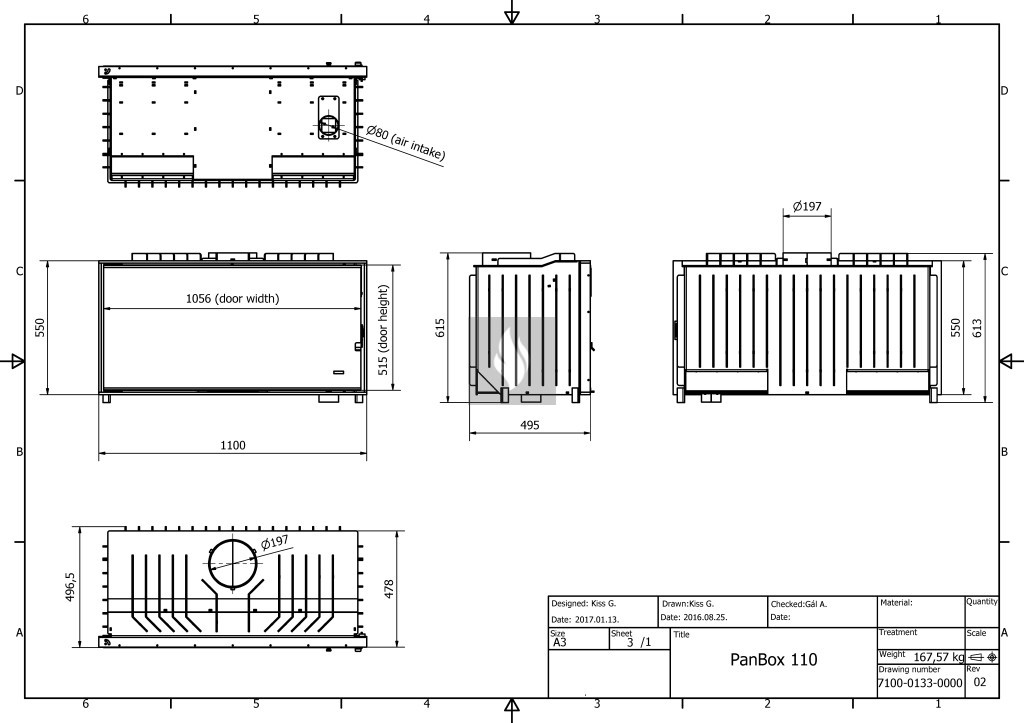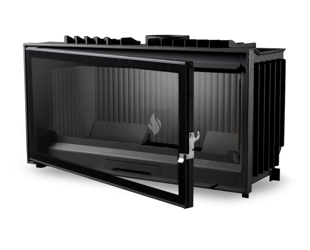 Firetechnic PanBox 110 Légfűtéses kandallóbetét, Oldalra nyíló ajtóval. Üvegezés típusa: Síküveges. 8,0 kW névleges teljesítménnyel.