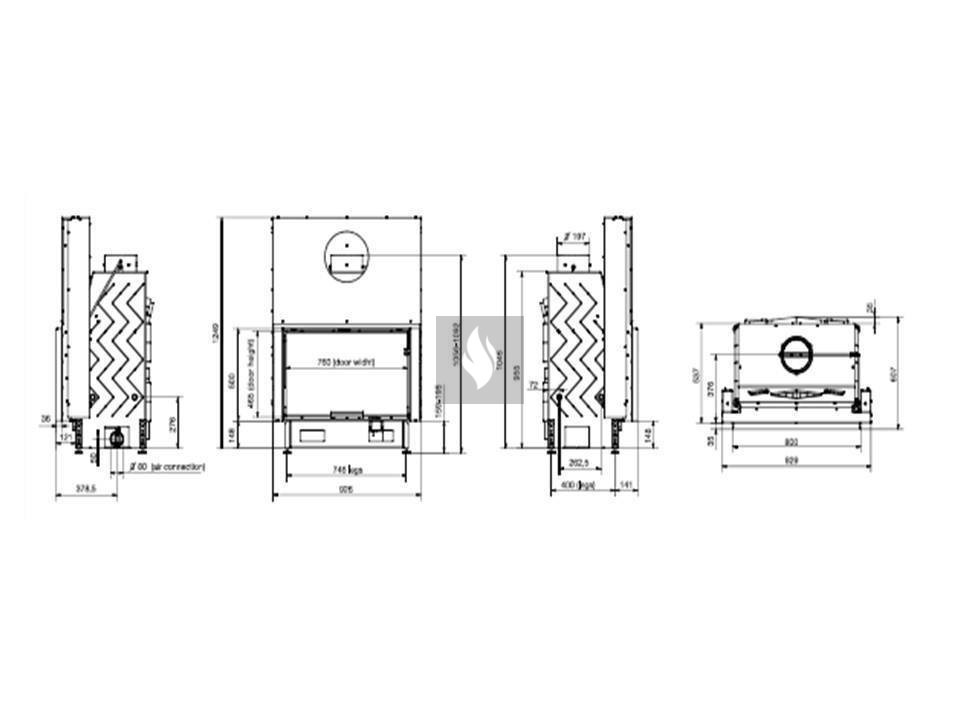 Firetechnic PanTech 100 EVO LD Légfűtéses kandallóbetét, Liftes (feltolható ajtó)val. Üvegezés típusa: Síküveges. 17,0 kW névleges teljesítménnyel.