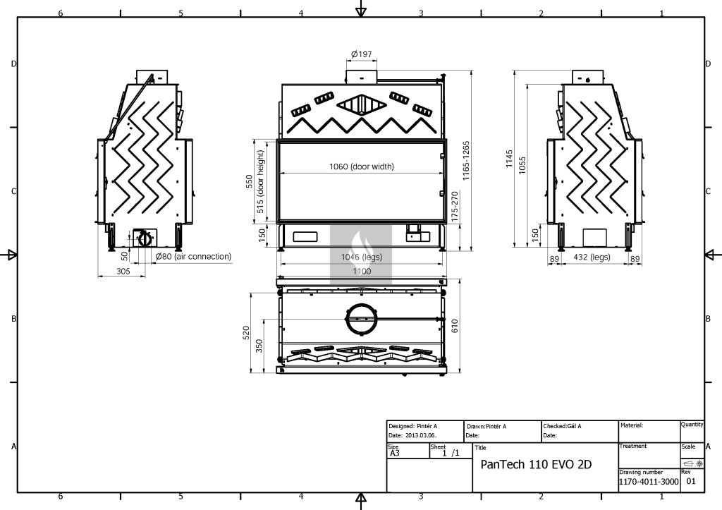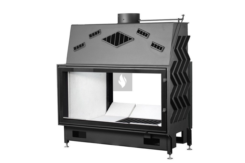 Firetechnic PanTech 110 EVO Tunnel Légfűtéses kandallóbetét, Oldalra nyíló ajtóval. Üvegezés típusa: Két ajtós, síküveges. 21,0 kW névleges teljesítménnyel.