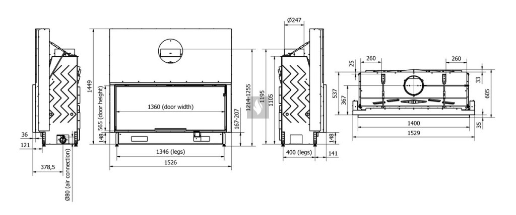 Firetechnic PanTech 160 EVO LD Légfűtéses kandallóbetét, Liftes (feltolható ajtó)val. Üvegezés típusa: Síküveges. 21,0 kW névleges teljesítménnyel.