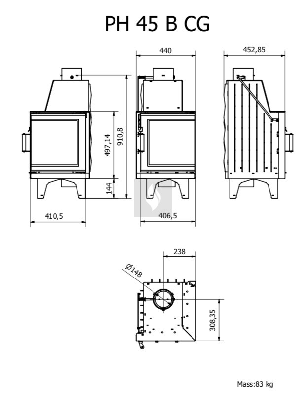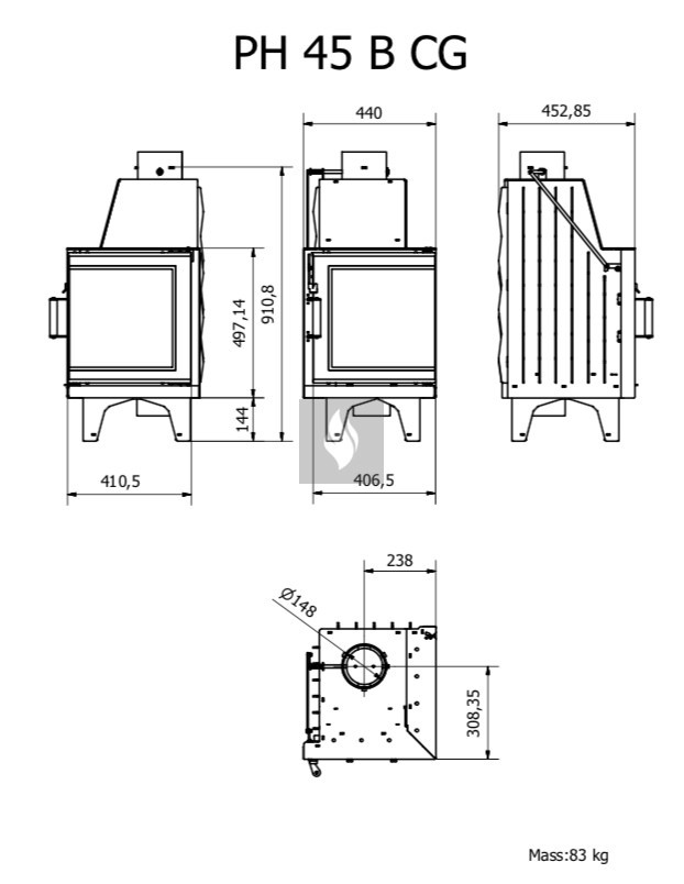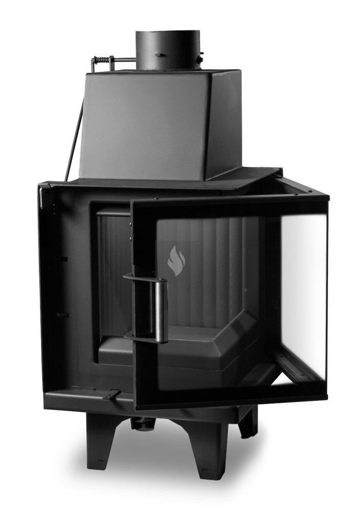 Firetechnic PanTech 45 B CG Légfűtéses kandallóbetét, Oldalra nyíló ajtóval. Üvegezés típusa: Saroküveges, jobbos. 6,0 kW névleges teljesítménnyel.