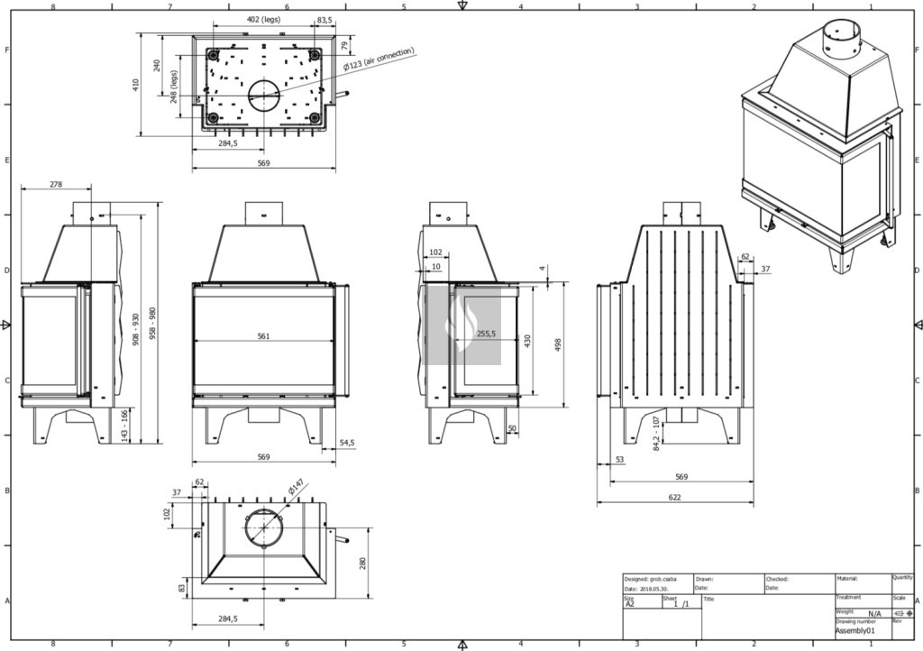 Firetechnic PanTech 60 BU Légfűtéses kandallóbetét, Oldalra nyíló ajtóval. Üvegezés típusa: Három oldali üveges. 6,0 kW névleges teljesítménnyel.