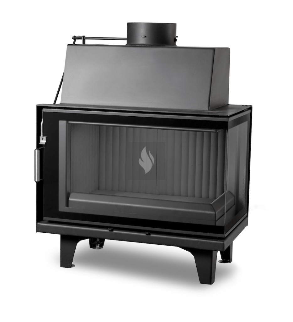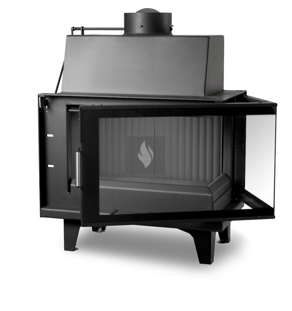 Firetechnic PanTech 75 B CG R Légfűtéses kandallóbetét, Oldalra nyíló ajtóval. Üvegezés típusa: Saroküveges, jobbos. 9,0 kW névleges teljesítménnyel.