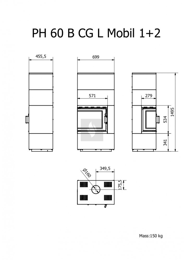 Firetechnic Pantech 60 BCG L Mobil 1+2 fekete (bal) design kandalló