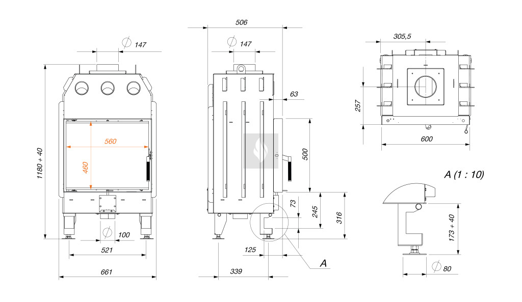 • 4 mm vastag, hőálló üveg a német Schott Robax gyártótól, amely akár 760 °C hőmérsékletet is elvisel