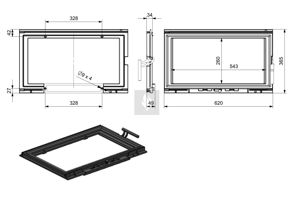KAWMET kandallóajtó W15 – 9,4 kW 620x365 mm