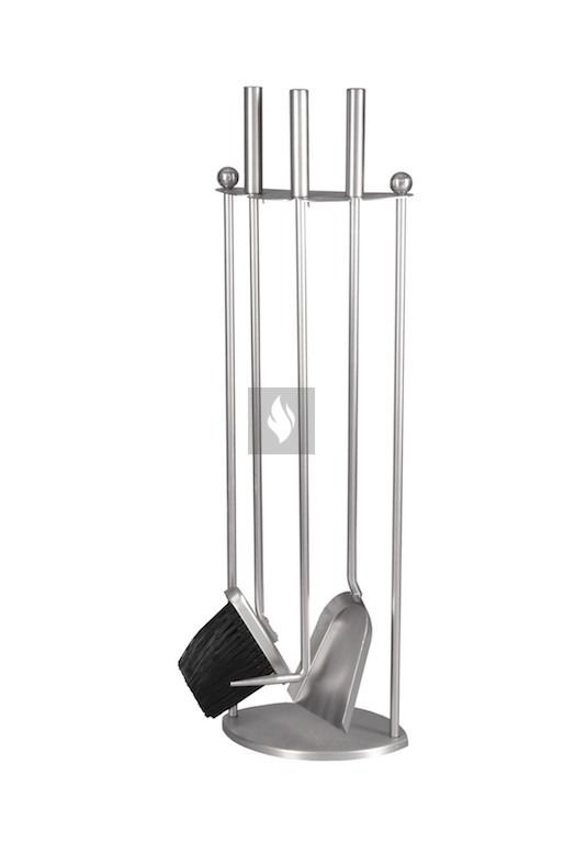 Matt acél kandallótisztító készlet. Részei: lapát, kefe, piszkavas.