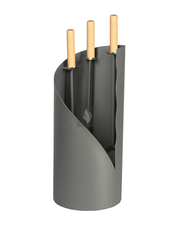 Kandallótisztító készlet, antracit, fa fogantyúkkal,félig nyitott, 3 részes
