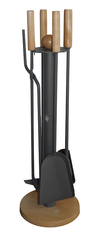 Kandallótisztító készlet, antracit, fa talppal és fogantyúkkal, 4 részes