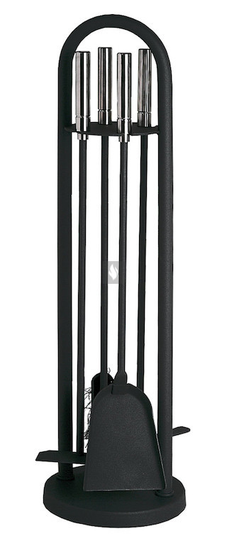 Kandallótisztító készlet fekete tartóval, acél nyéllel.