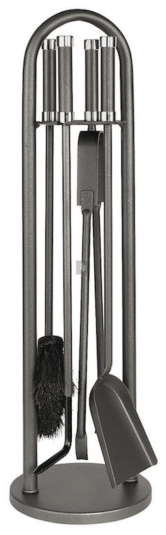 Kandallótisztító készlet, íves, széles, antracit, krómkupakos nyéllel, 4 részes