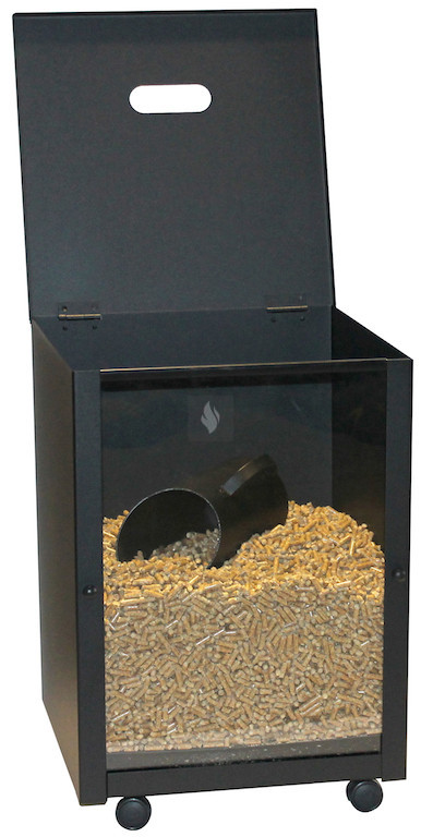 Pellettartó doboz, kocka alakú, gurulós, fekete