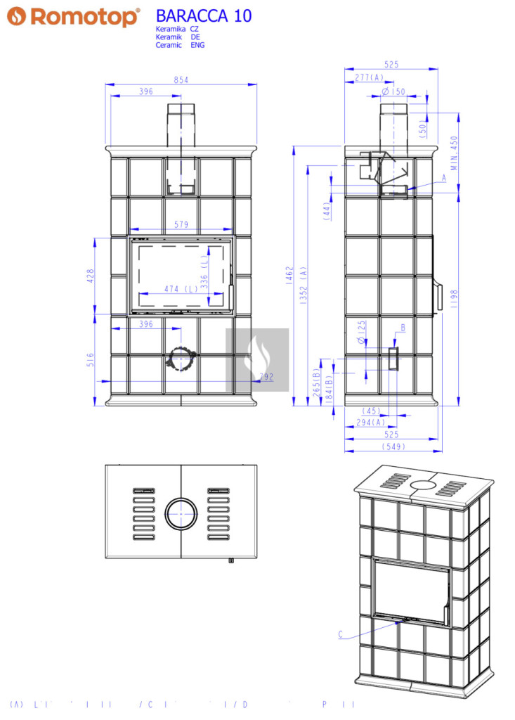 Romotop BARACCA 10 kályhacsempe burkolatú Kandallókályha - bővíthető hőtárolóval