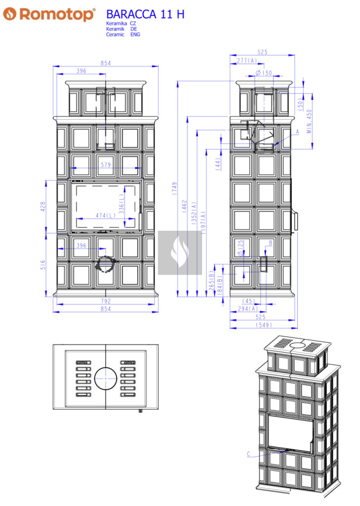 Romotop BARACCA 11 H kályhacsempe burkolatú kandallókályha - bővíthető hőtárolóval
