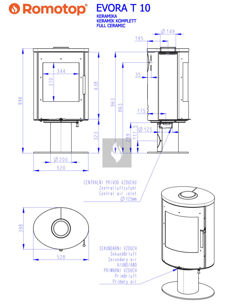 A Romotop kandallókályhák meghatározó jellemzője a letisztult, modern vonalvezetés. A speciális samott anyaggal bélelt égéstér megvédi a kályhát a vetemedéstől, valamint javítja az égési folyamat hatékonyságát. A lángok a világos színű égőtér faláról visszatükröződve teljes fényükben ragyoghatnak, a látvány még akkor is káprázatos, amikor a tűztérben már csak a pislákoló parázs marad. A további fontos jellemzője az irányított elsődleges és másodlagos égés, a légmosó üvegtisztító-rendszer, és a felső füstgáz-kivezetés. Az egyes kandallókályhákban akár 40 cm-es fahasábokat is tüzelhetünk. A Romotop kandallók Csehországban készülnek, megfelelnek a hatályos EU-szabványoknak és követelményeknek. Romotop - teljesítményre tervezve.