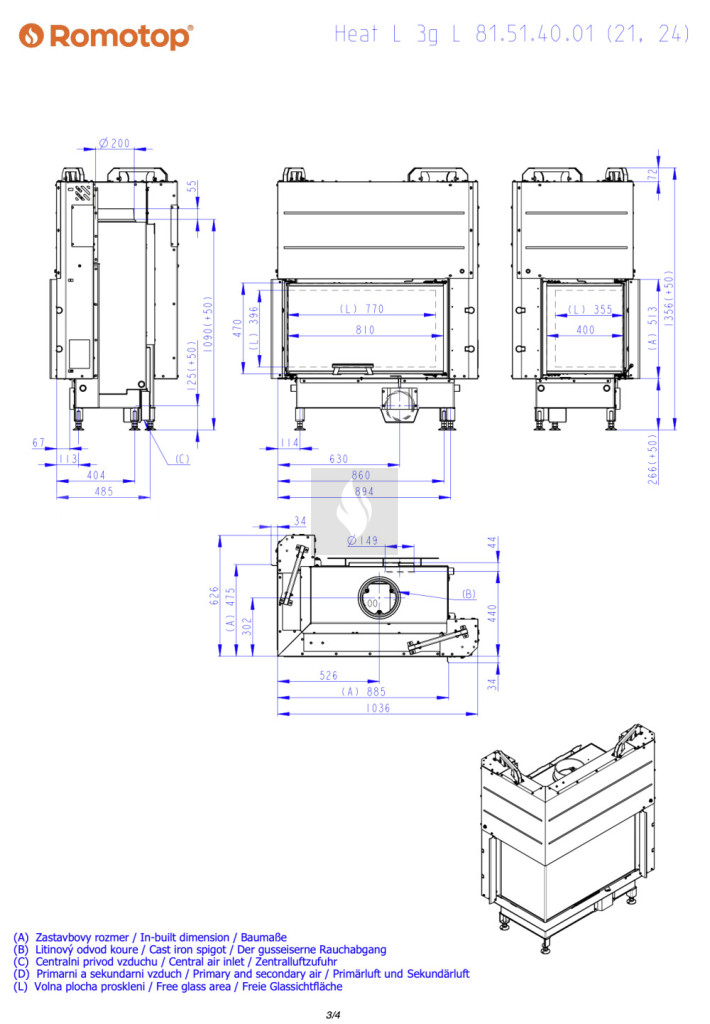 Romotop HEAT L 3G L 81.51.40.26 Légfűtéses kandallóbetét, fekete béléssel