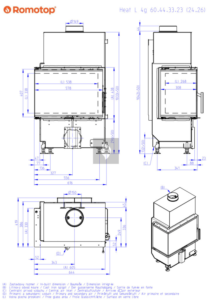 Romotop HEAT L 2G S 60.44.33.23 Légfűtéses kandallóbetét
