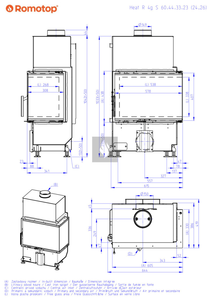 Romotop HEAT R 4G S 60.44.33.24 Légfűtéses kandallóbetét