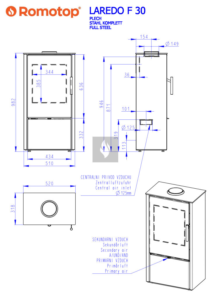 A Romotop kandallókályhák meghatározó jellemzője a letisztult, modern vonalvezetés. A speciális samott anyaggal bélelt égéstér megvédi a kályhát a vetemedéstől, valamint javítja az égési folyamat hatékonyságát. A lángok a világos színű égőtér faláról visszatükröződve teljes fényükben ragyoghatnak, a látvány még akkor is káprázatos, amikor a tűztérben már csak a pislákoló parázs marad. A további fontos jellemzője az irányított elsődleges és másodlagos égés, a légmosó üvegtisztító-rendszer, és a felső füstgáz-kivezetés. Az egyes kandallókályhákban akár 40 cm-es fahasábokat is tüzelhetünk. A Romotop kandallók Csehországban készülnek, megfelelnek a hatályos EU-szabványoknak és követelményeknek. Romotop - teljesítményre tervezve.