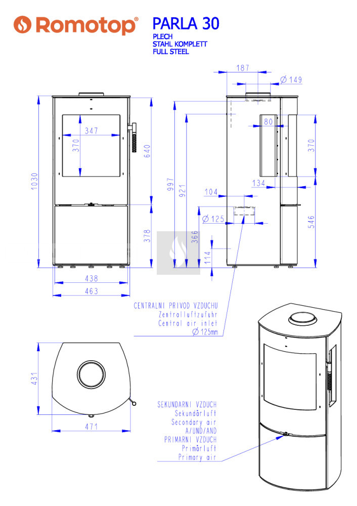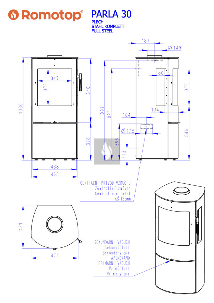 Romotop PARLA 3S lemez Kandallókályha
