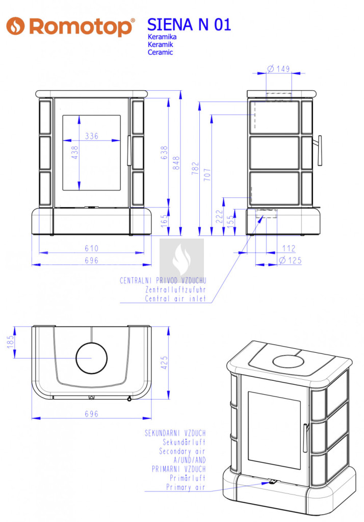 A Romotop kandallókályhák meghatározó jellemzője a letisztult, modern vonalvezetés. A speciális samott anyaggal bélelt égéstér megvédi a kályhát a vetemedéstől, valamint javítja az égési folyamat hatékonyságát. A lángok a világos színű égőtér faláról visszatükröződve teljes fényükben ragyoghatnak, a látvány még akkor is káprázatos, amikor a tűztérben már csak a pislákoló parázs marad. A további fontos jellemzője az irányított elsődleges és másodlagos égés, a légmosó üvegtisztító-rendszer, és a felső füstgáz-kivezetés. Az egyes kandallókályhákban akár 40 cm-es fahasábokat is tüzelhetünk. A Romotop kandallók Csehországban készülnek, megfelelnek a hatályos EU-szabványoknak és követelményeknek. Romotop - teljesítményre tervezve.