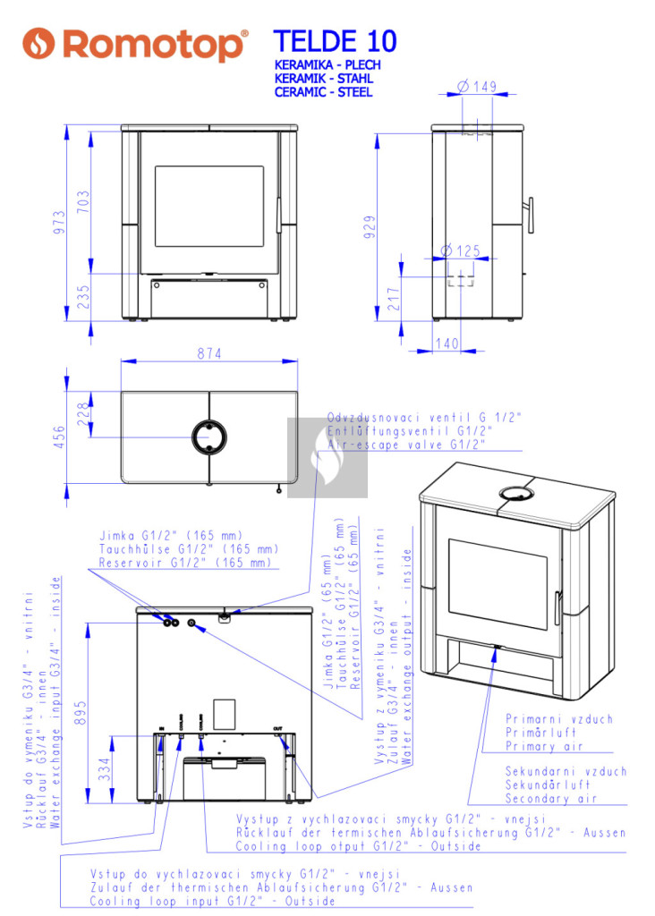 Romotop TELDE kerámia Vízteres kandallókályha