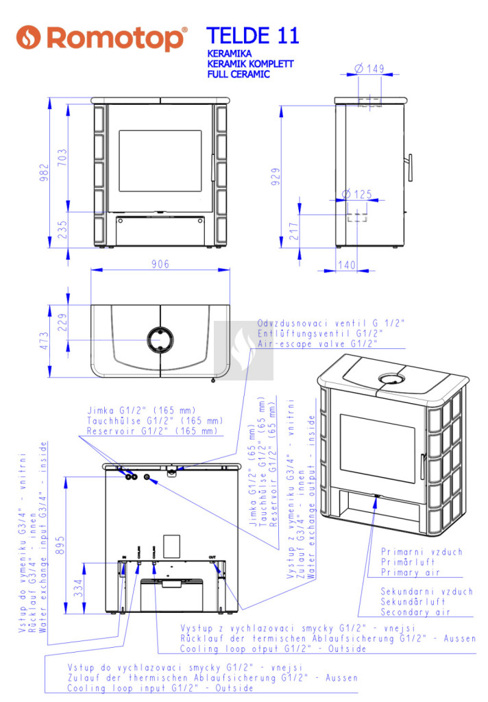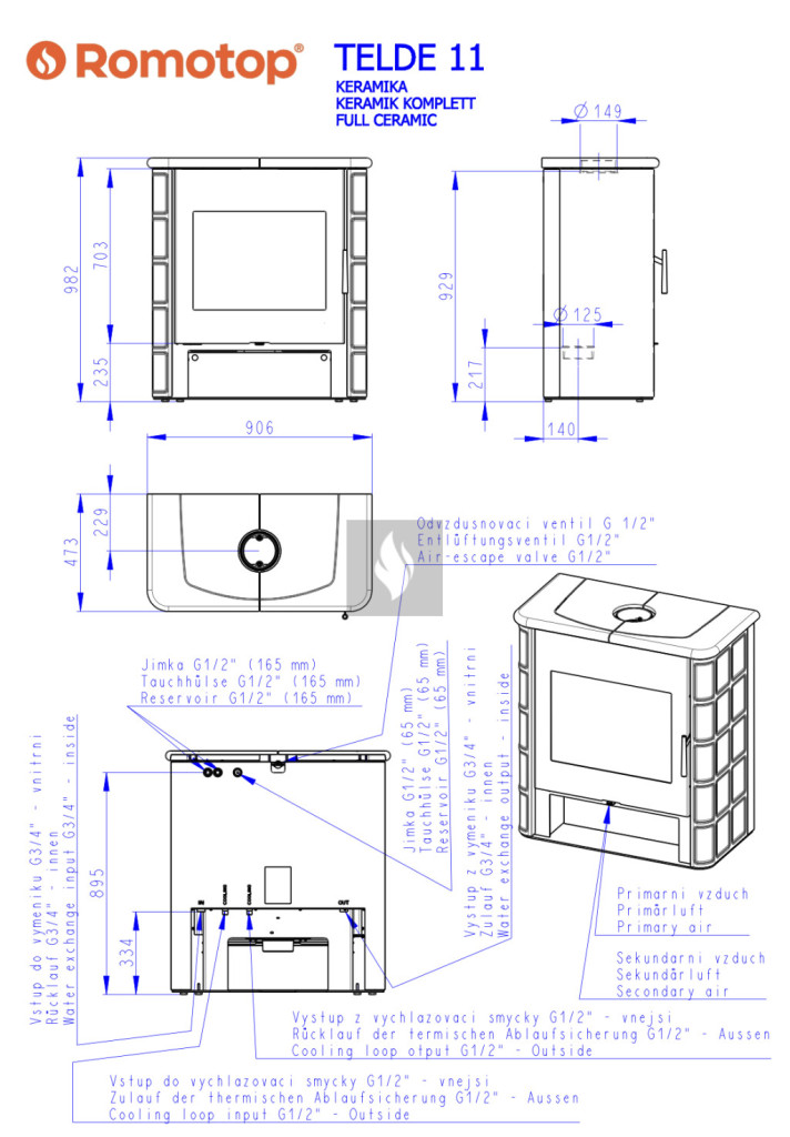 Romotop TELDE kályhacsempe burkolatú Vízteres kandallókályha