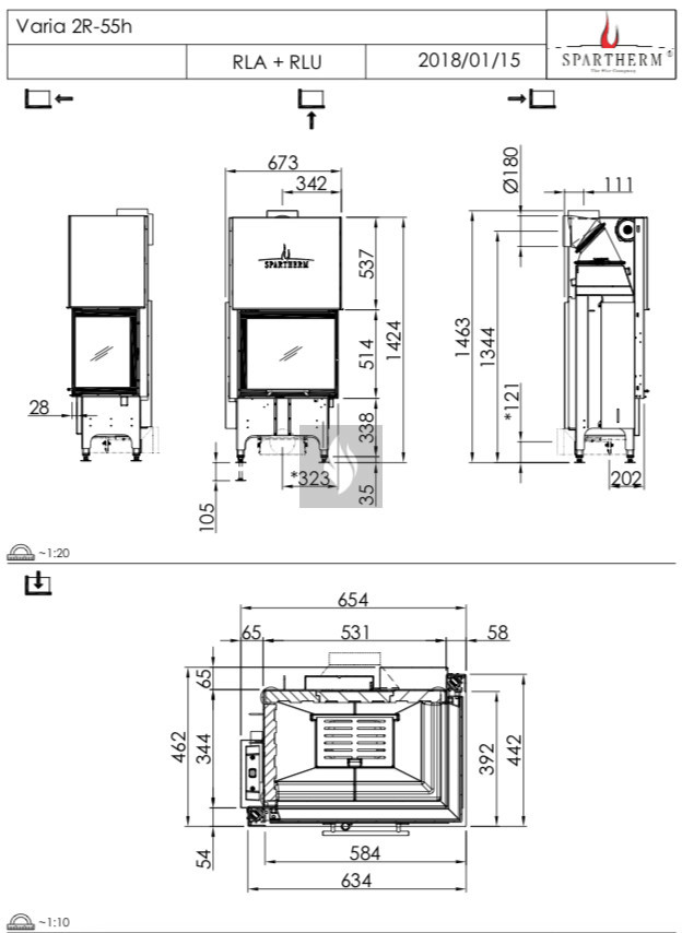 Spartherm Varia 2R-55h Légfűtéses kandallóbetét