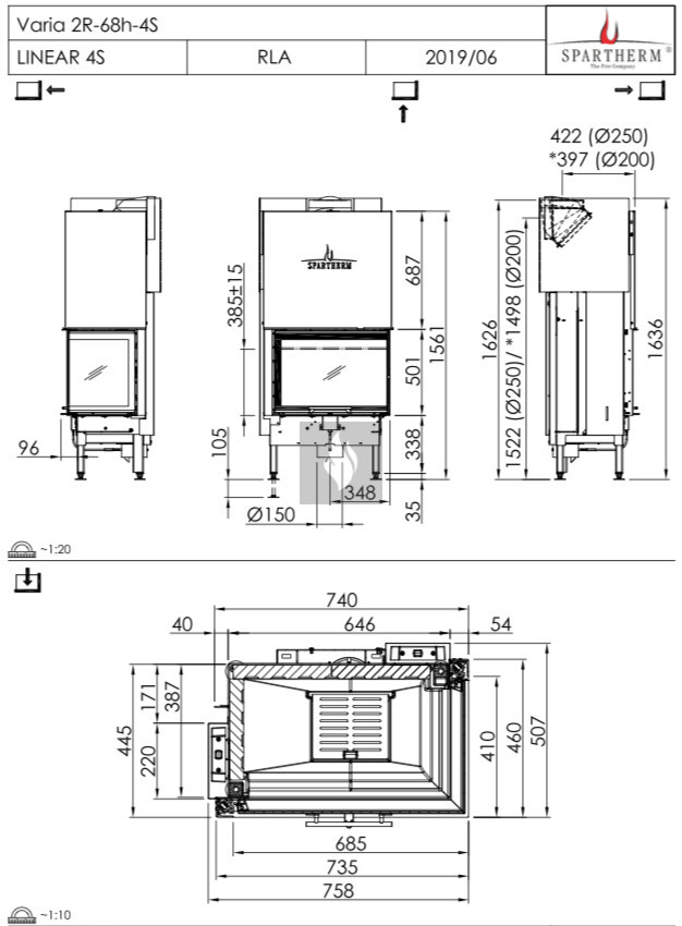 Spartherm Varia 2R-68h Légfűtéses kandallóbetét