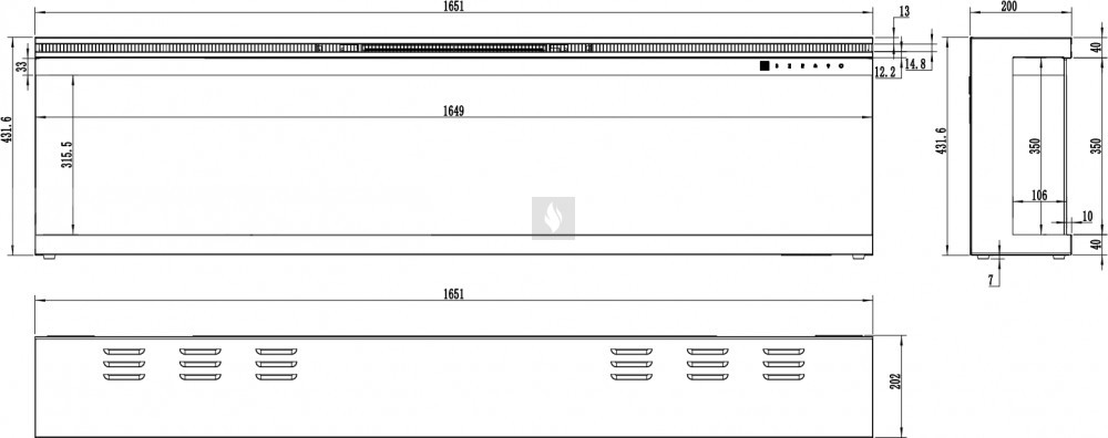 UNIT 166 fekete beépíthető elektromos kandalló mobil applikációval