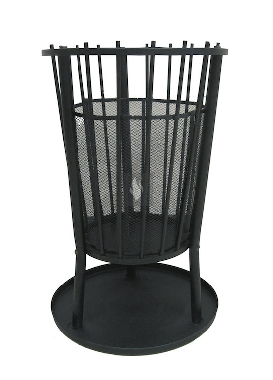 Fekete tűzrakó kosár, 42cm átmérőjű, 65 cm magas. Fém hálóval.