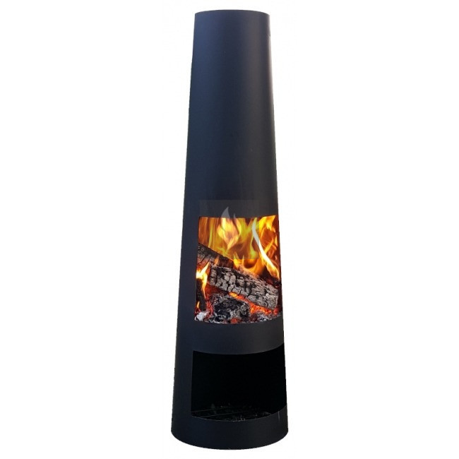 Fekete színű, 600 ℃-ig hőálló 0,8 mm-es anyagerősség. Az égőtér mérete: 24,8-27,8, Magassága: 28,3 cm.
