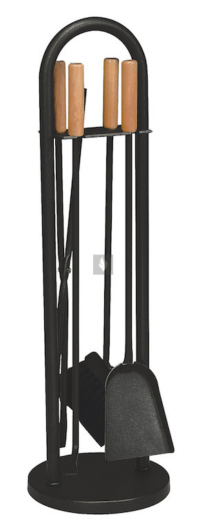 Kandallótisztító készlet, íves, fekete, bükkfa nyéllel, 4 részes