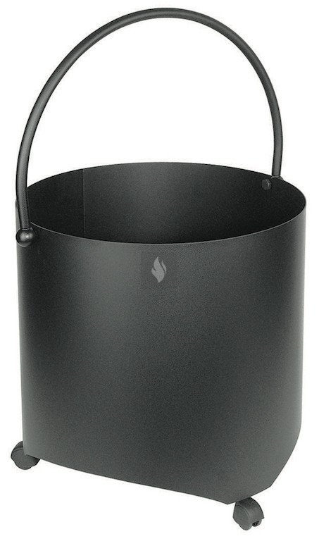Antracit színű fatároló kanna, kerekekkel, fogantyúval.