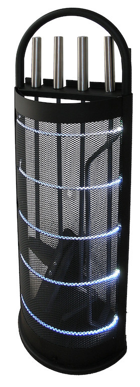 4 részből álló ledes kandallótisztító készlet fekete tartóval, acél nyéllel, kék-fehér Led fénnyel.