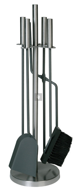 4 részes kandallótisztító készlet, matt acél bevonattal, antracit eszközökkel, acél fogantyúkkal.
