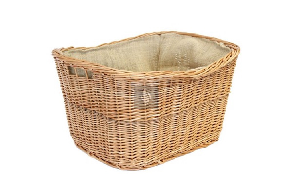 Praktikus, világos színű fonott tárlókosár belül juta béléssel