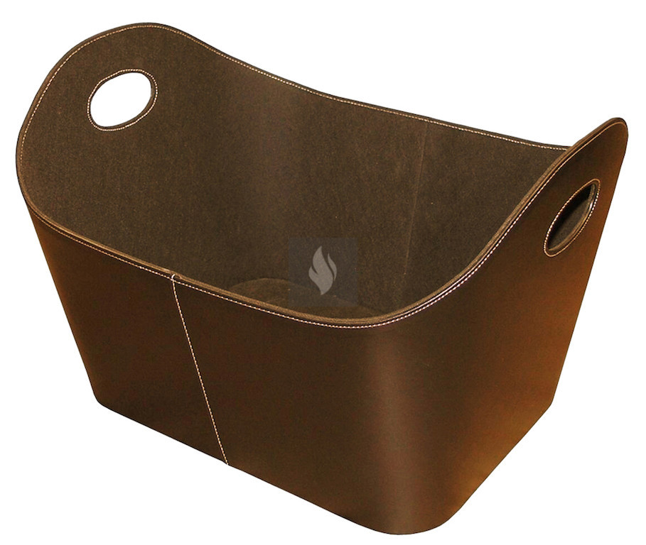 Műbőr tároló kosár, barna színben, belül fehér varrással, gyapjú béléssel. Sokoldalú felhasználhatóság jellemzi.