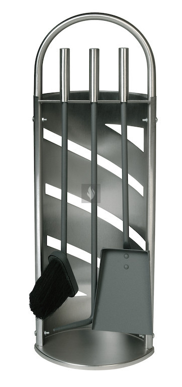 Matt acél kandallótisztító készlet, antracit eszközökkel, és acél nyéllel.