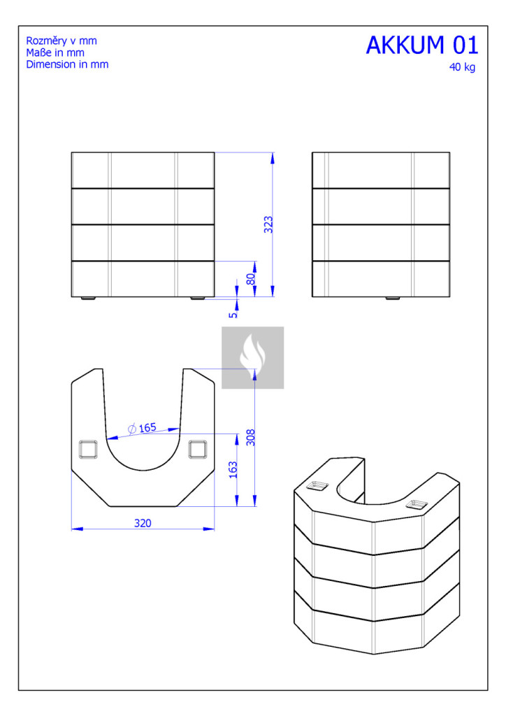 Ez az univerzális hőtároló szett a Romotop EVORA - LAREDO - LUGO - LUANCO kandallókályhákhoz lett kifejlesztve. Az égőtér felett kialakított helyre szerelhető be. Segítségével növelhető a kandallókályhánk hőtároló képessége. A sugárzó fűtés 5,5 órával meghosszabbodik a hőtároló szett tömegének köszönhetően. Az akkumulációs szett súlya 40 kg.